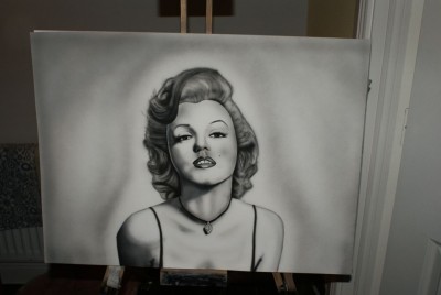paca na plutnie malowane createxami. Kotek calkowicie od reki a do marylin troche krzywika uzylem. Ogoleni maluje od grudnia 2010 i prosze o jakas krytyke i jakies podpowiedzi pozdrawiam