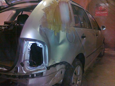Skoda Fabia poszycie tylnego prawego b³otnika do wymiany,drugi to rzezba i przejscia na drzwi...Babra³em sie z tym dosc d³ugo bo wszystko dopasowac,wyrzezbic i takie tam...