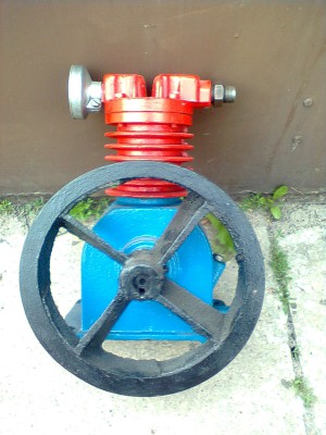 | Bardzo trwa³a konstrukcja korba na pó³panewkach z br±zu ³o¿yska kulkowe na wale 1200 obr/min zniesie ale trzeba na ni± dmuchn±æ bo g³owica jest skromnie o¿ebrowana wydajno¶æ max ok 150-180L s± dwie wersje KP-2 KP-2A A jest mniejsza butla fabryczna do¶æ du¿a ok 140 L |