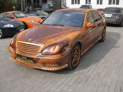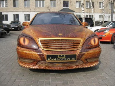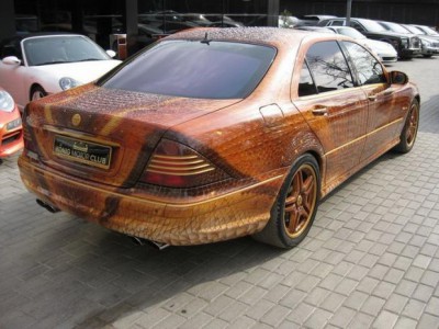 Ten AMG ma na dachu i na pokrywach nowy laminat z PCF t³oczonego imituj±cego skórê. W tym wypadku no¶nikiem jest grube i ciê¿kie PCV kszta³towane strumieniem pary. W wiêkszo¶ci to hydrografika z wanny i w czê¶ci hydrografika z komory pró¿niowo parowej. Reszta to nowe PCV i trochê pracy aerografem.