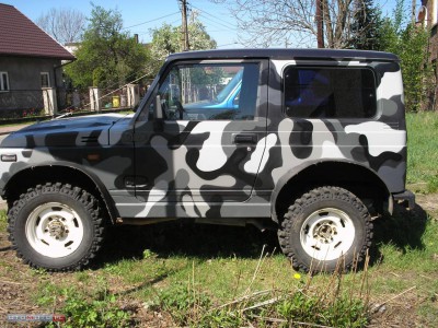 Witam wszystkich serdecznie , ¶wietne forum . Potrzebujê pomocy ; otó¿ za nied³ugo nabêdê Suzuki Samurai , zamierzam go pomalowaæ w sposób podobny do przedstawionego na zdjêciu. Jeszcze nigdy niczego nie lakierowa³em ale chcia³bym siê pobawiæ. Lakier my¶lê ¿e bêdzie raczej matowy , zastanawiam siê czy do pomalowania wystarczy takie co¶ , czy te¿ jest to zwyk³a zabawka :