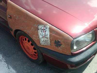 w poniedzia³ek brat mia³ ma³a st³uczkê gdzie zagi±³ b³otnik i pokiereszowa³ trochê zderzak, auto na szybko zosta³o ogarniête (tak b³otnik specjalnie jest pordzewia³y - nazywa siê to jak rdza po ang. ROST)