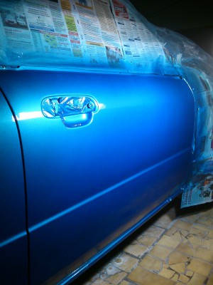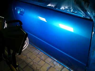 Na zdjêciach twoja robota wygl±da super. Szczególnie niebieskie drzwi. Czy u¿y³e¶ na nich jaki¶ podk³ad wype³niaj±cy b±d¼ np. szpachlê natryskow±