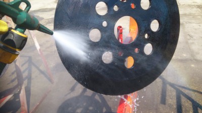 Odt³uszczam powierzchniê (ca³e podwozie myjê wod± z p³ynem do naczyñ).