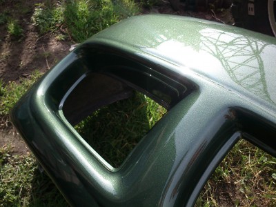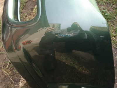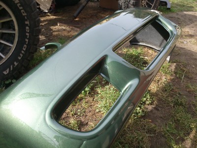 Jak pamietacie zderzak byl na czarnym golfie. Z czasem czarny golf przeistoczyl sie w zielonego arl-a dwu drzwiowego :-) co za tym idzie ? Trzeba bylo zminic kolor zderzaka zeby pasowal do nowej bestii.. A oto i on