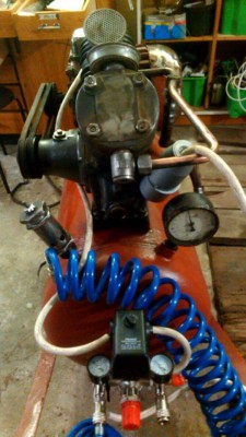 Witam Panowie. Wygrzeba³em w stodole stary kompresor zbudowany jeszcze przez mojego tatê jakie¶ 20 lat temu(za jego ¿ycia). Jest to bodaj¿e rosyjska sprê¿arka spiêta z silnikiem 3 fazowym (niestety nie wiem jakiej mocy). Kompresor trochê od¶wie¿y³em tzn oczy¶ci³em, przeczy¶ci³em metalowe filtry, dorzuci³em presostat, podpi±³em nowy kabel, oleju nie wymienia³em (powinienem?). Kompresor dzia³a. 100 litrów nape³nia do 8bar w 1m50sek wiêc tak mniej wiêcej powinien mieæ ~380l/min wydajno¶ci. Niestety na sprê¿arce nie ma ju¿ tabliczki znamionowej, tak samo nie ma jej na silniku :( Tutaj pytanko z mojej strony: mo¿e kto¶ z was zetkn±³ siê z takim sprzêtem? Chcia³bym zwiêkszyæ wydajno¶æ do ok 500 litrów (chcia³bym podpi±æ do niego piaskarkê syfonow± 38l). Czy zmiana ko³a pasowego na silniku na wiêksze za³atwi³aby sprawê? Ile wg was mocy mo¿e mieæ ten silnik? I ostatnie pytanie: czy powinienem wymieniæ olej w sprê¿arce? Je¶li tak to co to za olej? Dorzucam fotki kompresora do postu. Z góry dziêki
